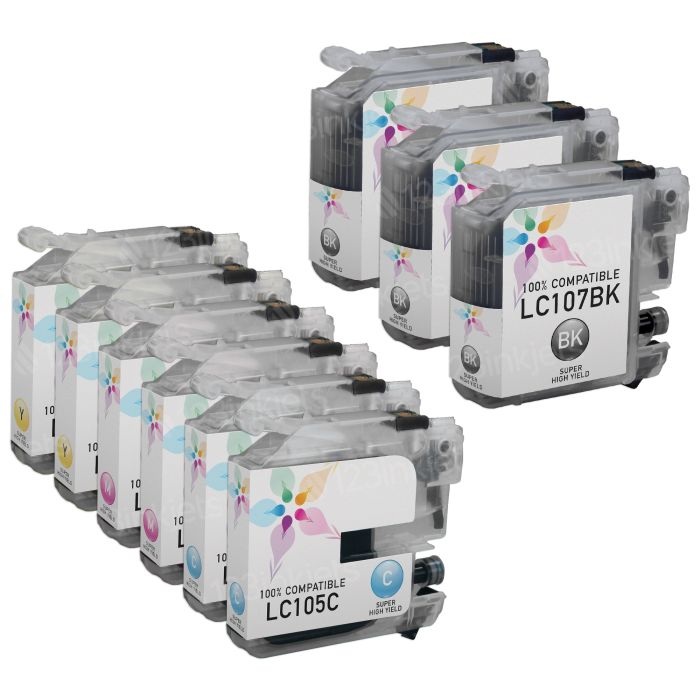Compatible Brother LC107 and LC105 Super High Yield Ink Cartridge 9-Piece Bulk Set