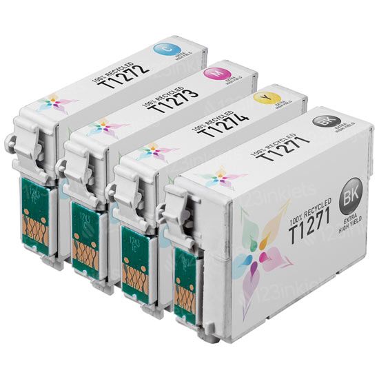 Stock up and save with our 4-piece bulk set of 127 ink cartridges. Includes 1 each of black, cyan, magenta and yellow. These compatible inkjet cartridges replace OEM Epson ink cartridges without sacrificing quality and performance. With our 100% Satisfaction Guarantee, our compatible replacements for Epson cartridges are an excellent alternative to OEM Epson cartridges, delivering beautifully clear, crisp printouts you can depend on.